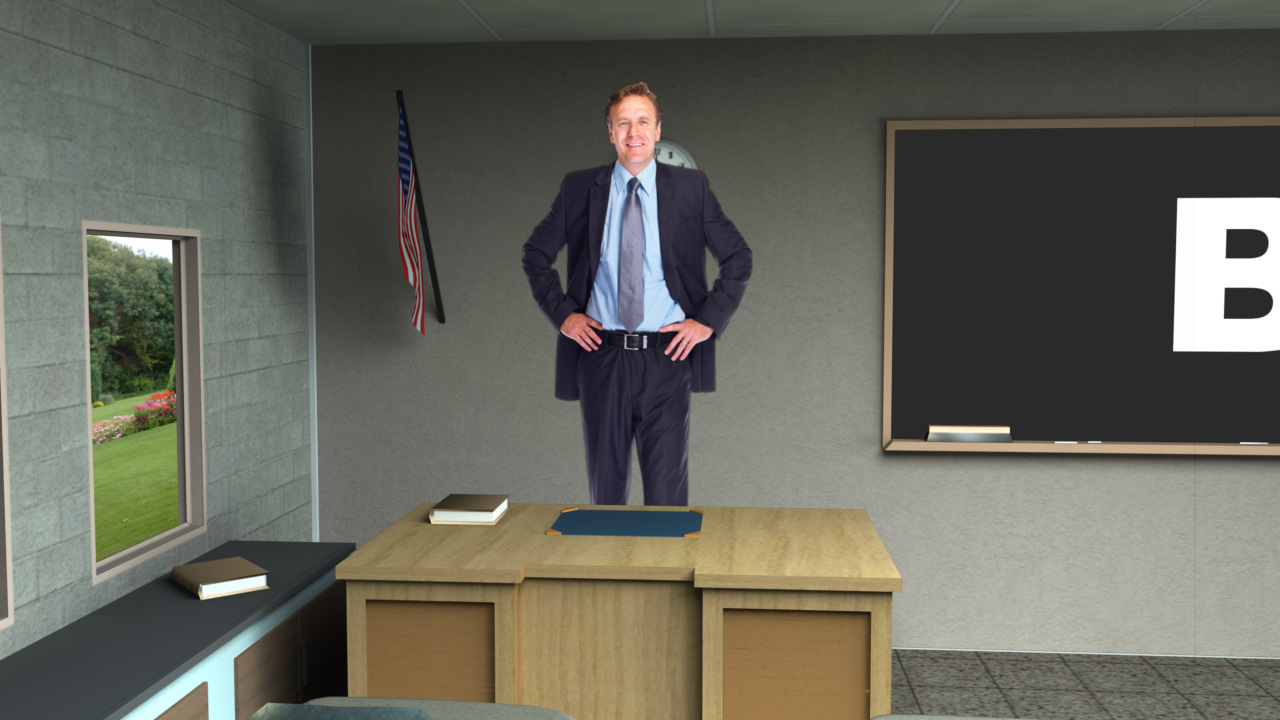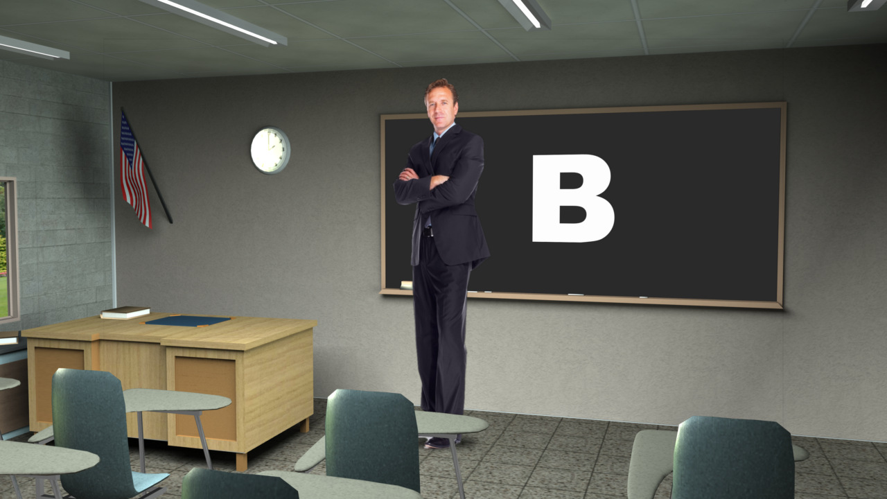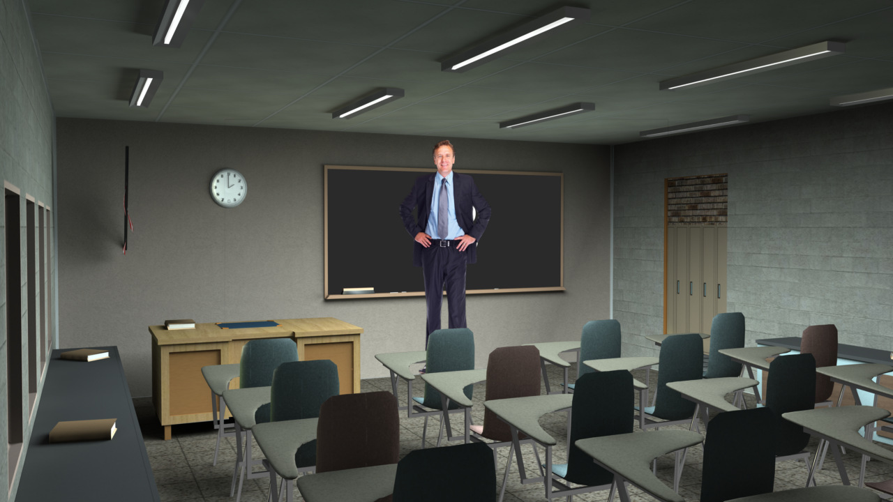 Virtual Set Studio 105 is a classroom with chalkboard. Click on the small image to view angles from this set. Download Only.
