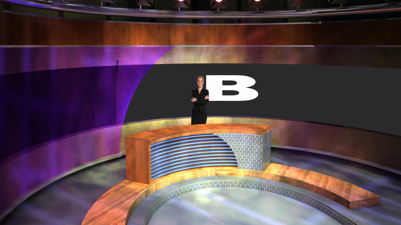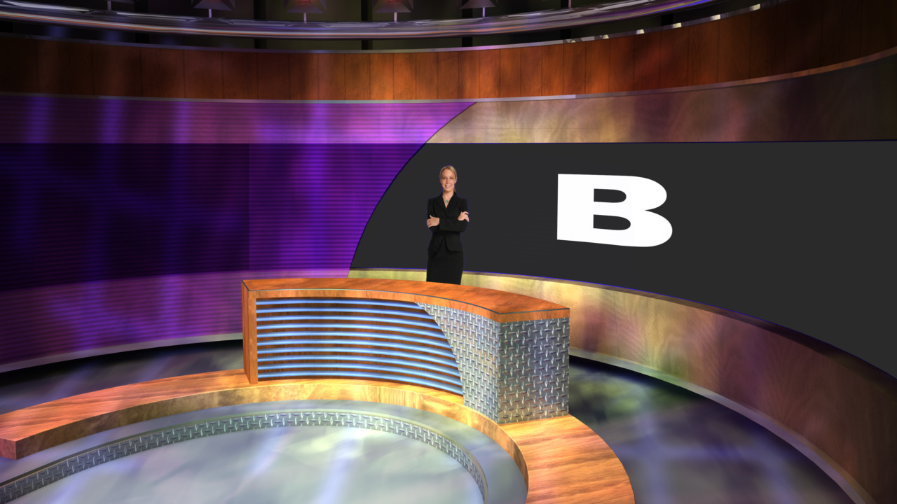 Virtual Set Studio 112 is a news desk with lots of texture and lighting. Click on the small image to view angles from this set. Download Only.