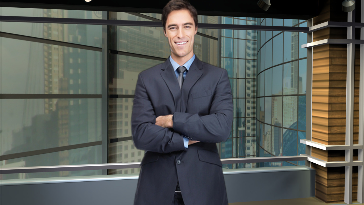 Virtual Set Studio 115 is an office with screen overlooking buildings. Click on the small image to view angles from this set. Download Only.