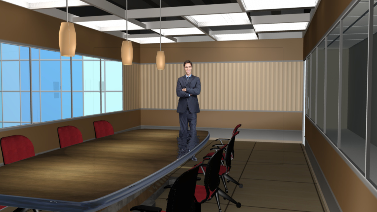 Virtual Set Studio 128 is a conference room with a view of buildings. Click on the small image to view angles from this set. Download Only.