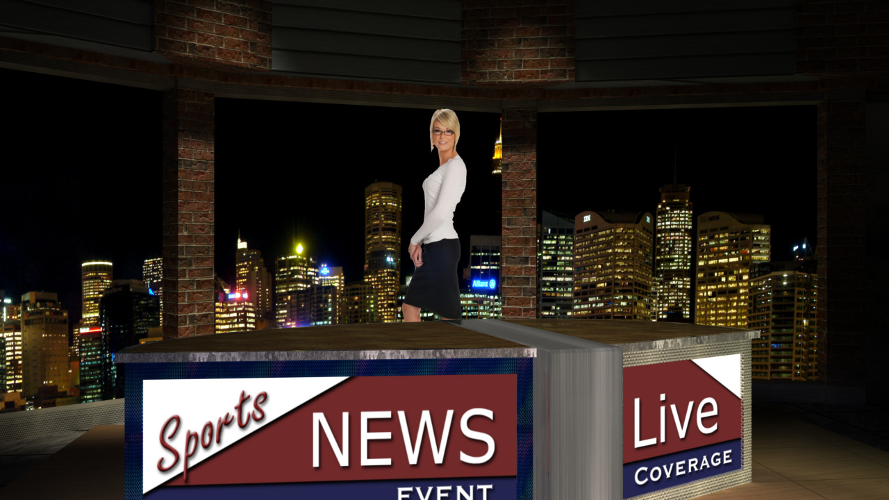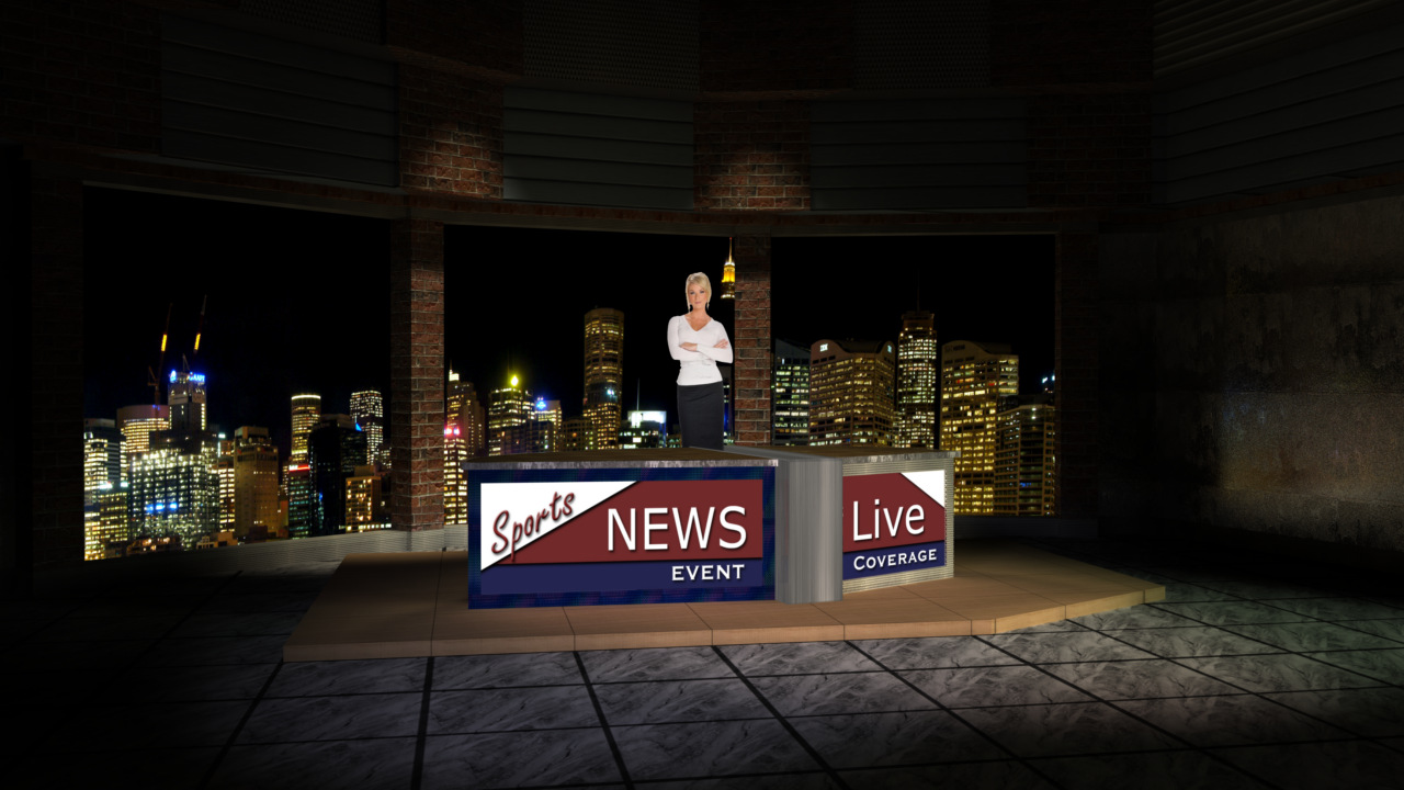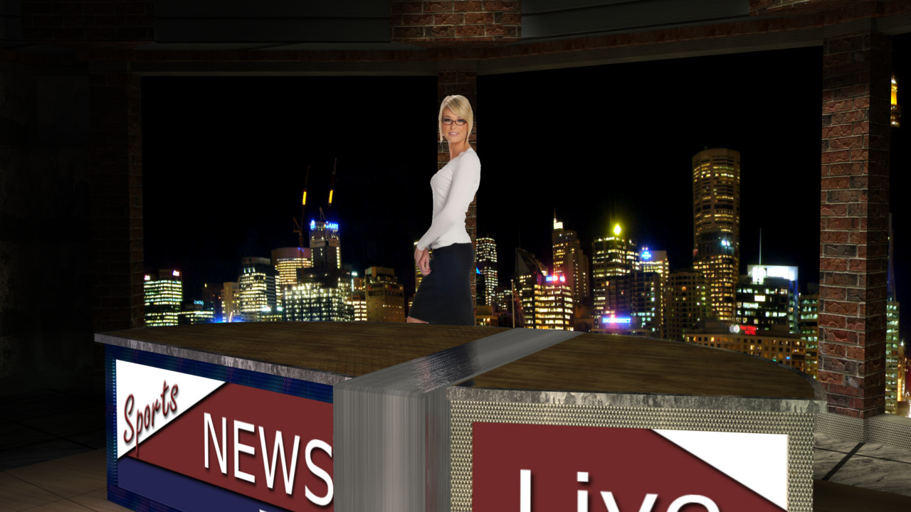 Virtual Set Studio 145 is a newsdesk with changeable desk front. Click on the small image to view angles from this set. Download Only.