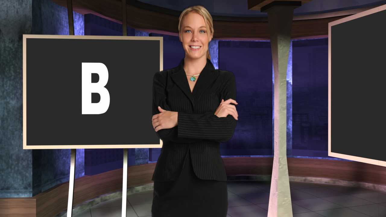 Virtual Set Studio 103 for 4K is a newsdesk with a wireframe of the capital in the background.