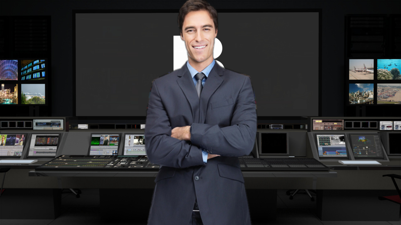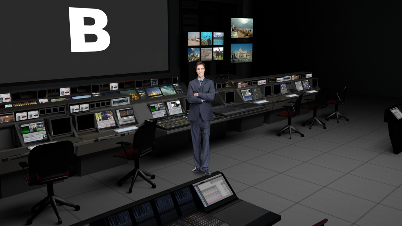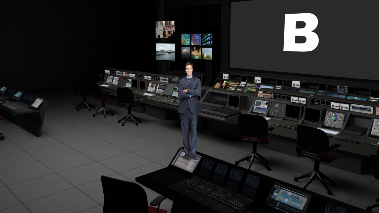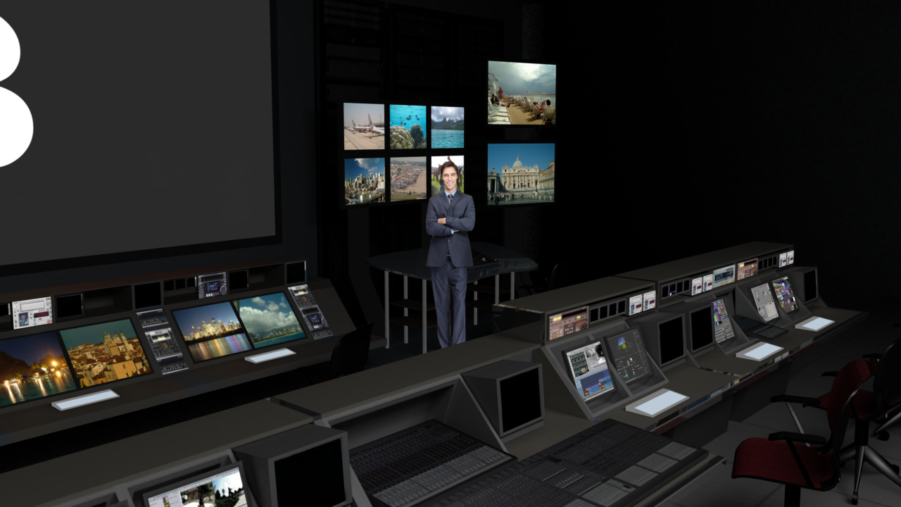 Virtual Set Studio 158 for Virtual Set Editor is a control room for a television station.