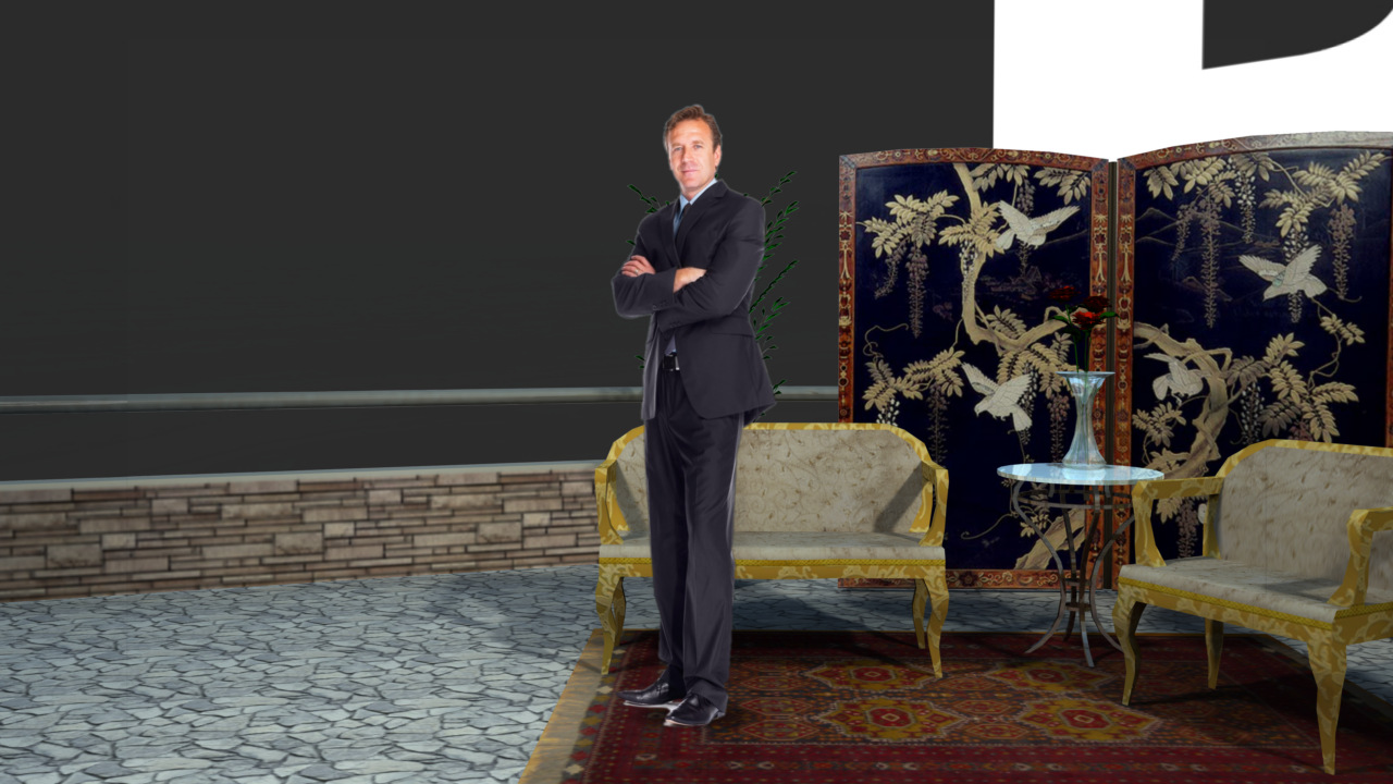 Virtual Set Studio 170 is a portico with chairs and screen. Click on the small image to view angles from this set. Download Only.