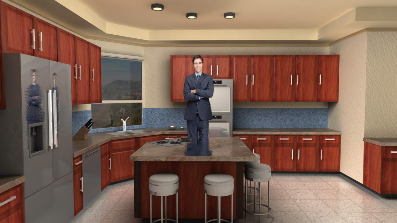 Virtual Set Studio 176 is a kitchen overlooking a beach. Click on the small image to view angles from this set. Download Only.