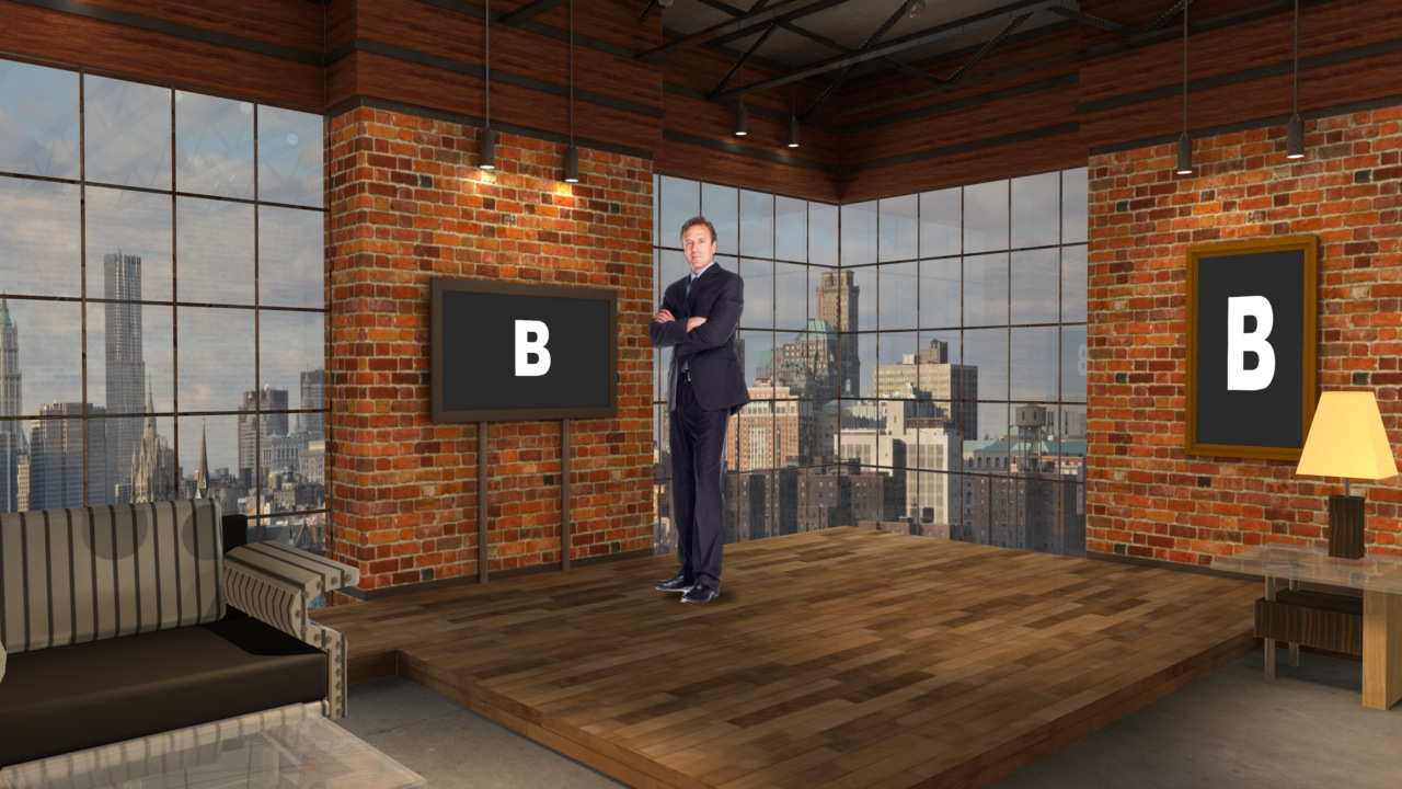 Virtual Set Studio 180 is a city loft with furniture and a skyline. Click on the small image to view angles from this set. Download Only.
