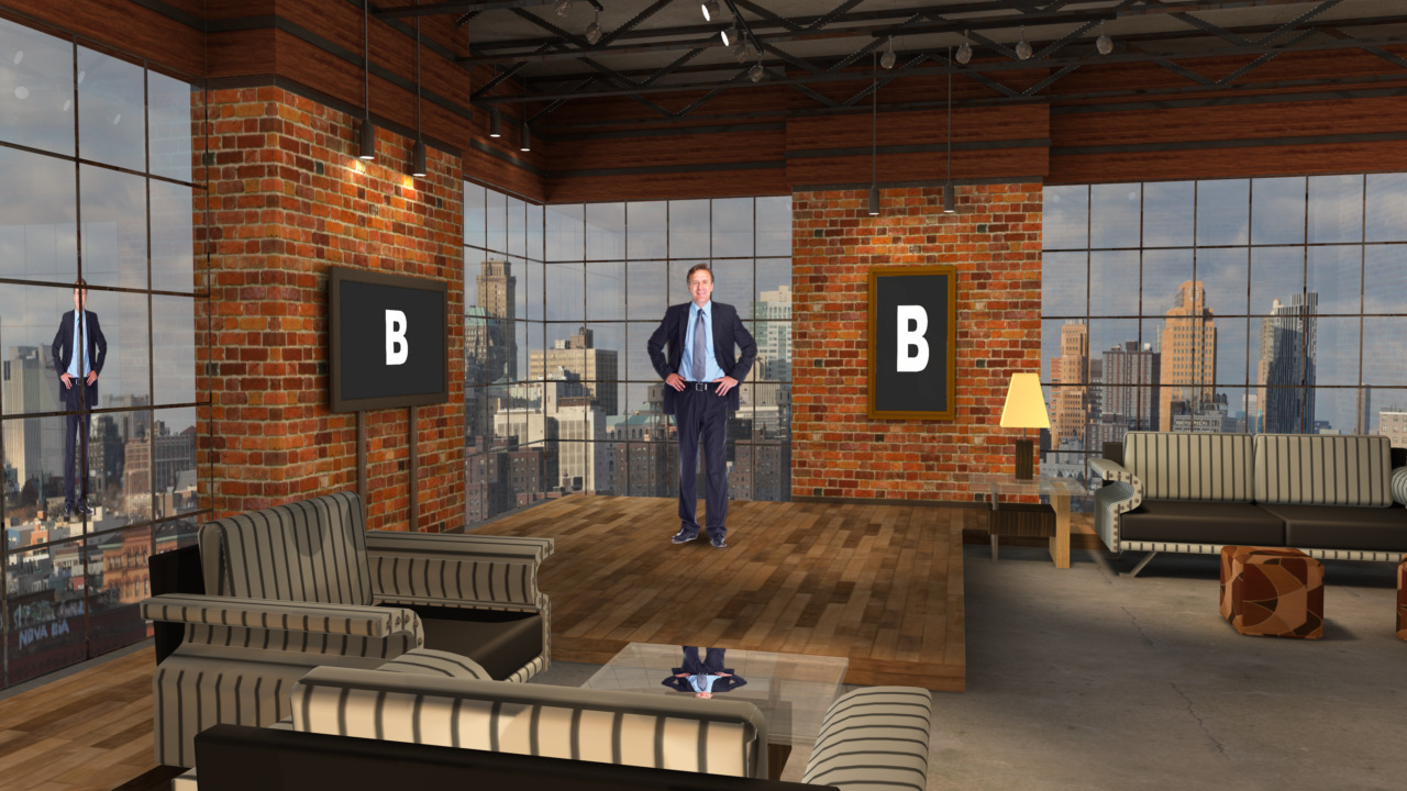 Virtual Set Studio 180 for Virtual Set Editor is a city loft with furniture and a skyline.