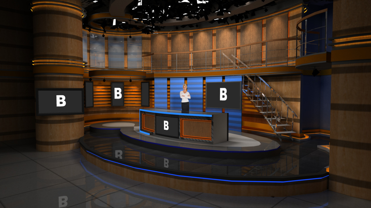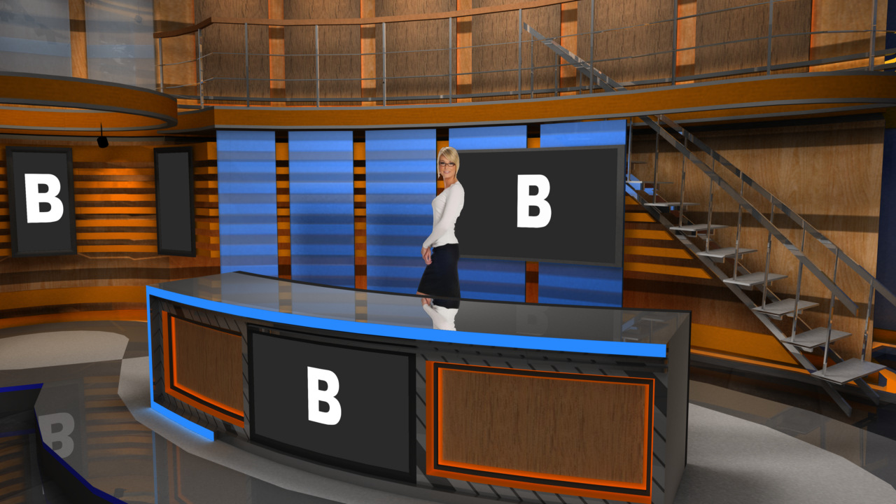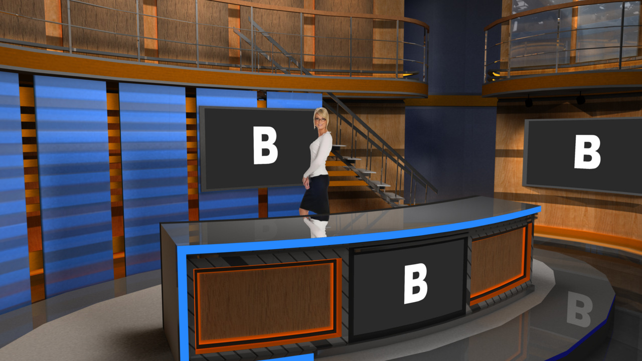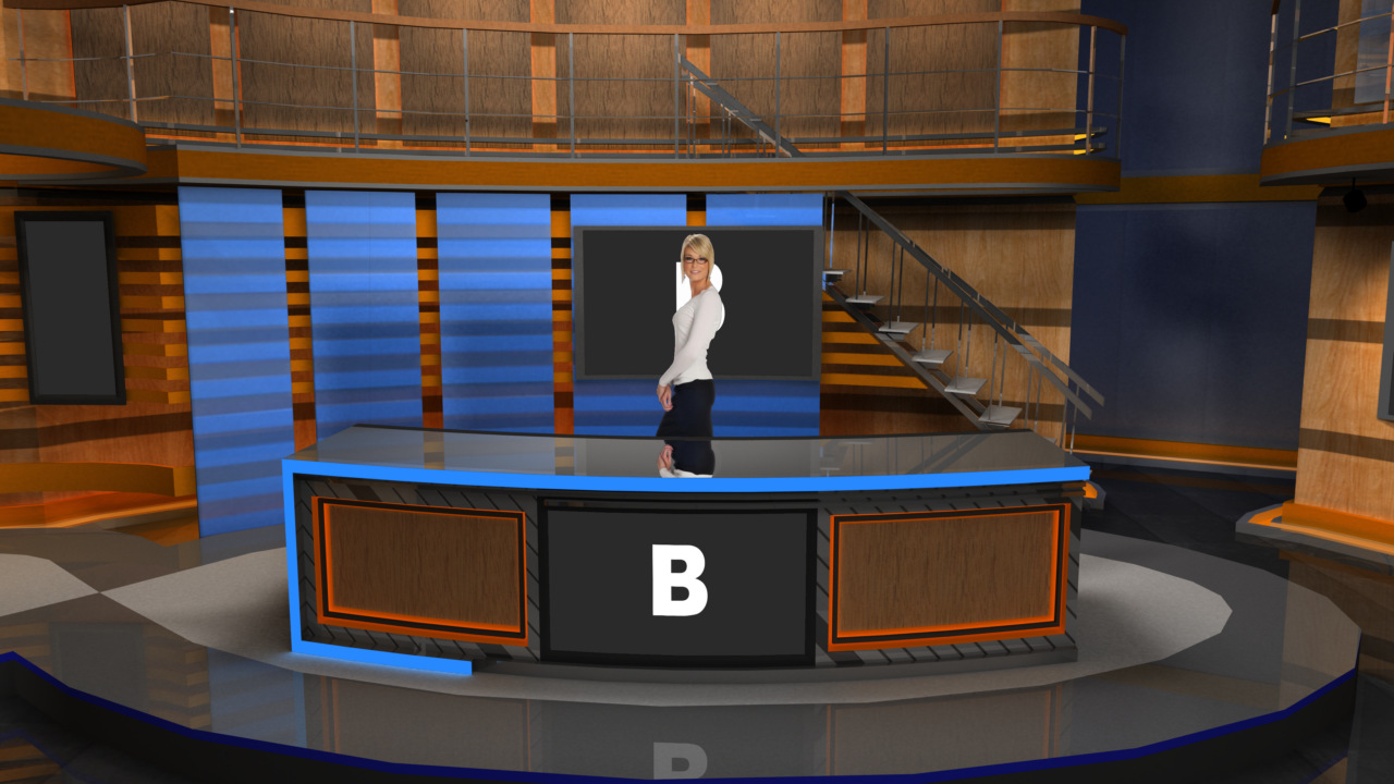 Virtual Set Studio 181 is a news desk with stairs and side areas. Click on the small image to view angles from this set. Download Only.