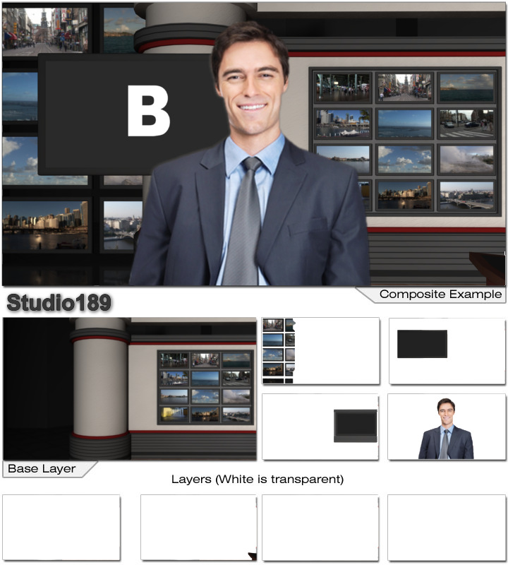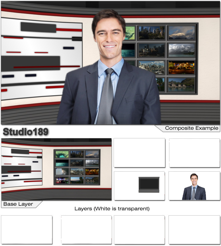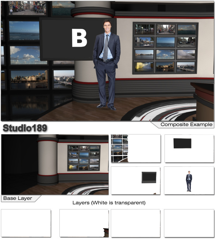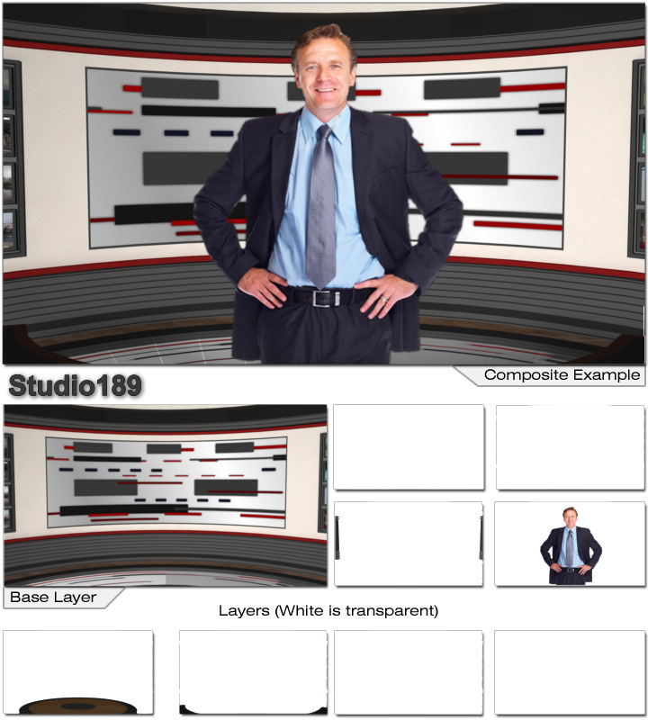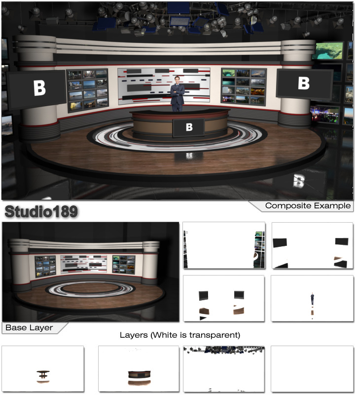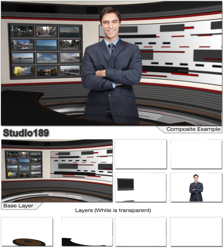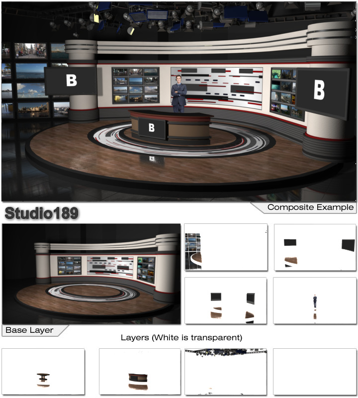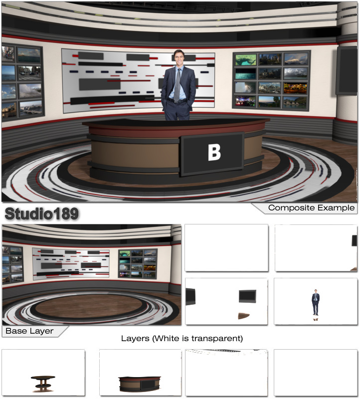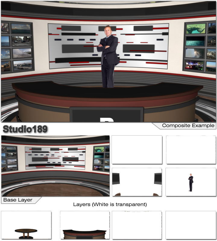 Virtual Set Studio 189 for Virtual Set Editor is perfect presentations and is configurable with screens, a desk, and a table.