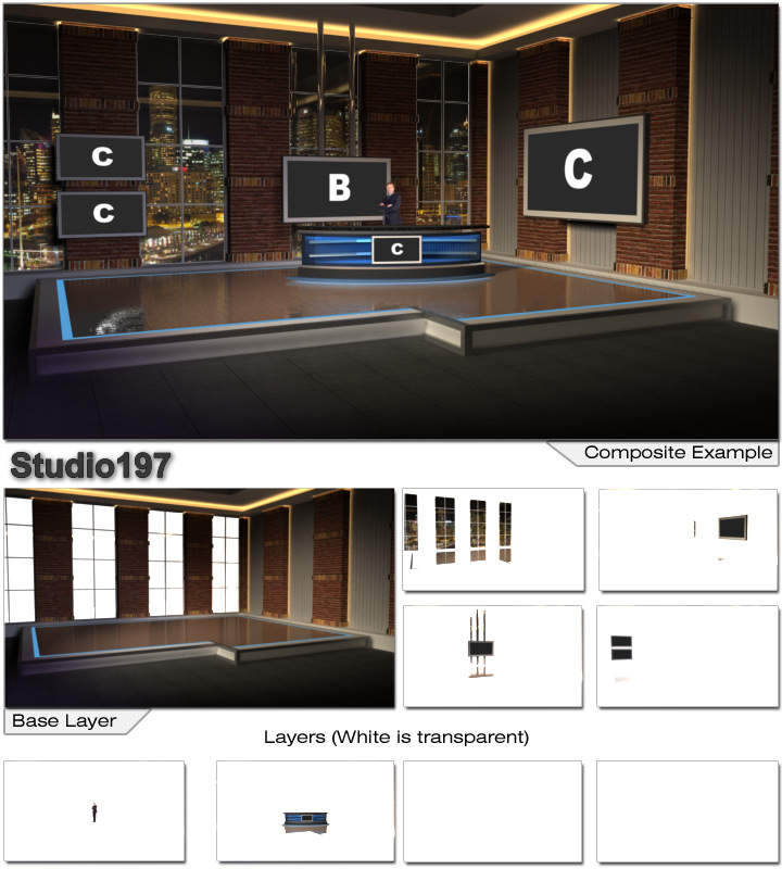 Virtual Set Pack Volume 7 4K:  Royalty Free, Includes 10 Virtual Sets with 16 Angles Each in 4K Format: Studio194 Studio196 Studio197 Studio200 Studio202 Studio203 Studio204 Studio205 Studio206 Studio207