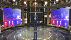 Virtual Set Studio 118 for 4K is a circular stage surrounded by monitors.