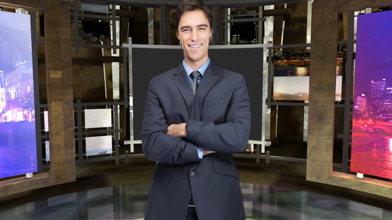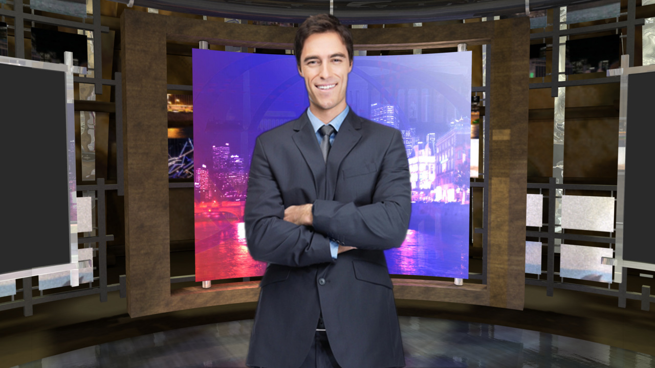 Virtual Set Studio 089 for After Effects is a blue room with screens.