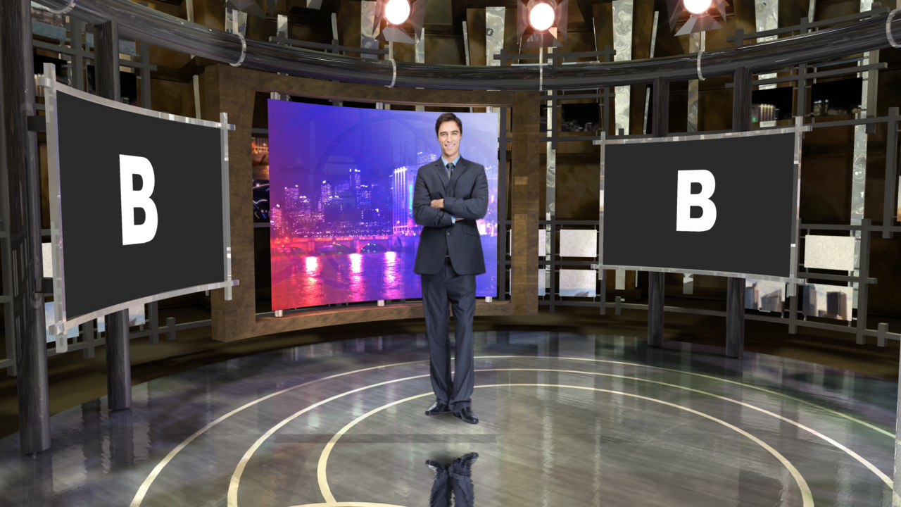 Virtual Set Studio 089 is a blue room with screens. Click on the small image to view angles from this set.